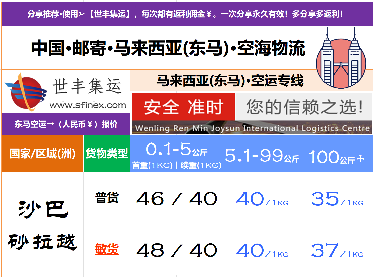 世丰国际代运-马来西亚丨沙巴丨沙捞越(东马集运-Malaysia)-东马空运、海运小包、立方大海运-资费